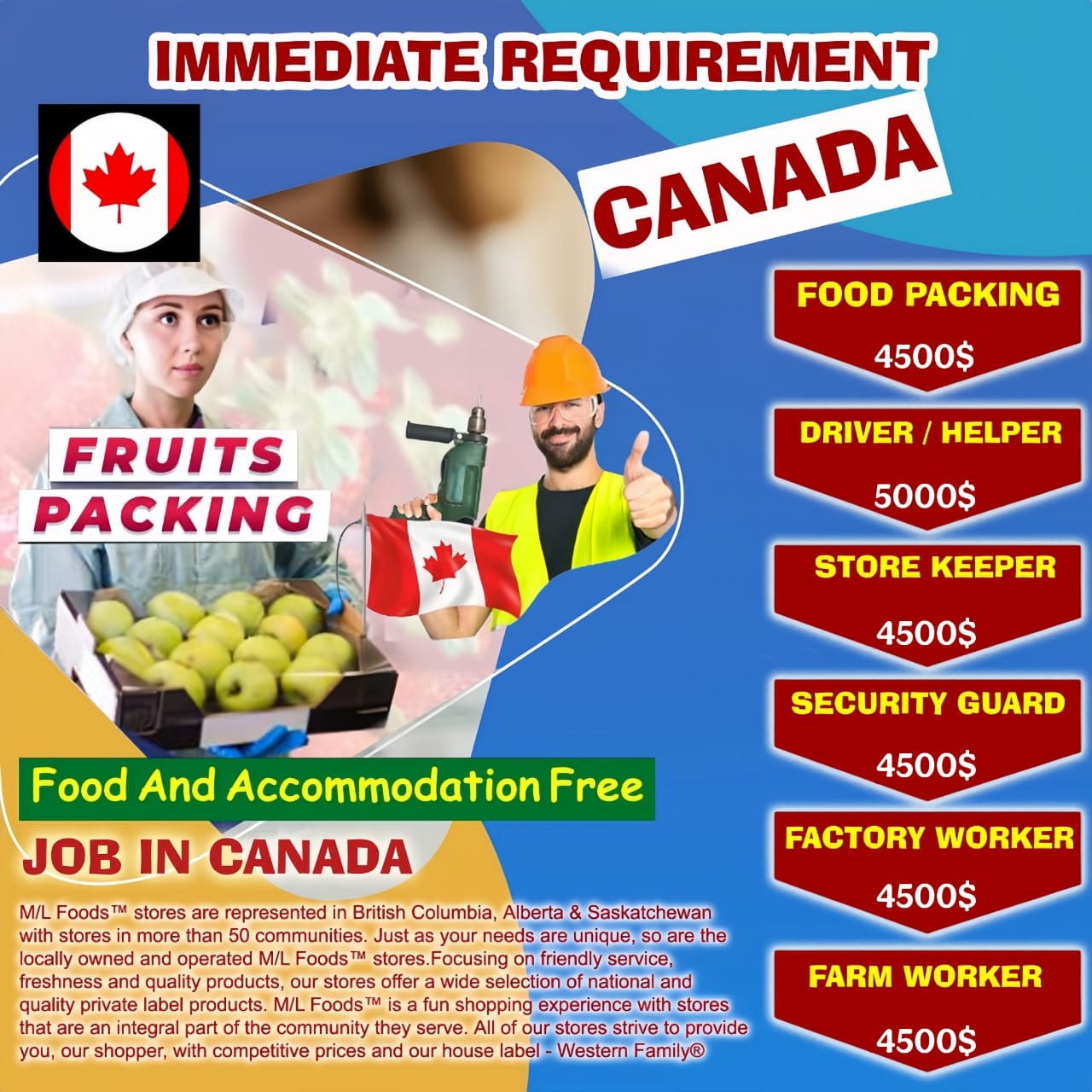 We are hiring 500 Food Packers in Canada with a starting salary of $4500 CAD. Enjoy incredible benefits, including a free visa, free ticket, free accommodation, free medical insurance, and a yearly bonus.